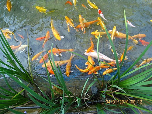 原來這一小溪有這麼多的錦鯉魚在游來游去。